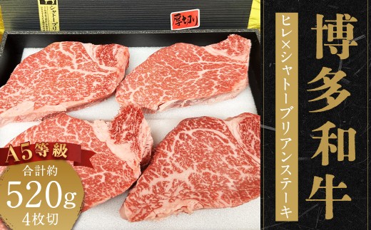 博多黒毛和牛 A等級 ヒレ×シャトーブリアンステーキ約520g(4枚切)ステーキソース4袋付き 牛肉 シャトーブリアン ソース付き 贅沢 食事 冷凍 福岡県 柳川市