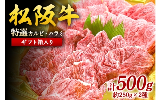 各約250gずつ計500g/松阪牛焼肉用特選カルビ・ハラミ/ギフト箱入り |