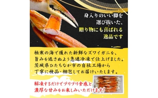 ロシア産の新鮮な本ずわいがにを使用し、茨城県ひたちなか市で丁寧に加工された肩付脚です。