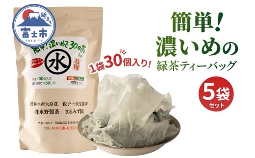緑茶ティーバッグお湯出し・水だし両用タイプ 簡単!濃いめで30日茶 5袋 まるみず園 国産茶葉 大容量ティーバッグ 手軽 家庭用 たっぷり飲める 毎日の習慣 ティータイム リラックス 静岡県 富士市 [sf002-518]