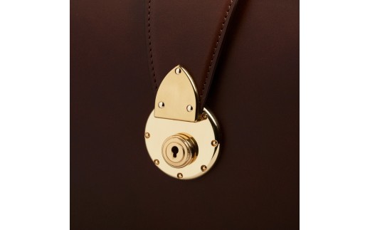 本革(豚革)の内張り、錠前などの金具は真鍮削り出し、強度のかかる重要部分は手縫いを施しており、革の切り目部分の磨きに拘りと、ハンドワークならではの良さをお楽しみいただけます。