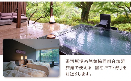 ●湯河原温泉旅館協同組合加盟旅館で使える「宿泊ギフト券」をお送りします。