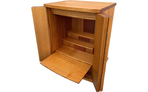 総桐無垢摺り漆仕上げ仏壇1台 サイズ幅約45.5cm×高さ54.5cm×奥行37cm 原材料:桐材(取手及び背面中央部には花梨材を使用) 製造地:大阪府岸和田市 |