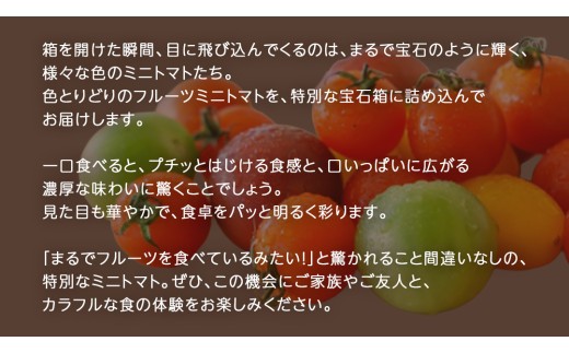 色とりどりのフルーツミニトマトを、特別な宝石箱に詰め込んでお届けします。