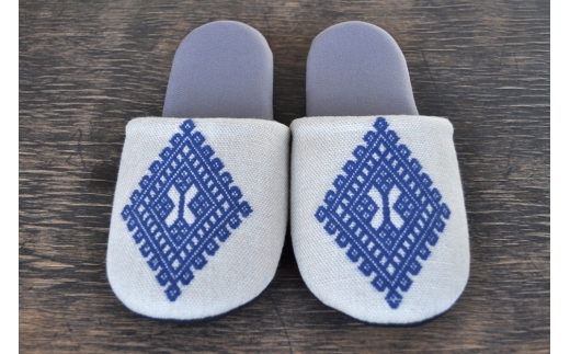 - 津軽こぎん刺し ペアスリッパB【生成/せいじ】(スリッパ 全て24.5cm)【 民芸品 工芸品 伝統技術 日用品 お揃い 生成 せいじ 青 】