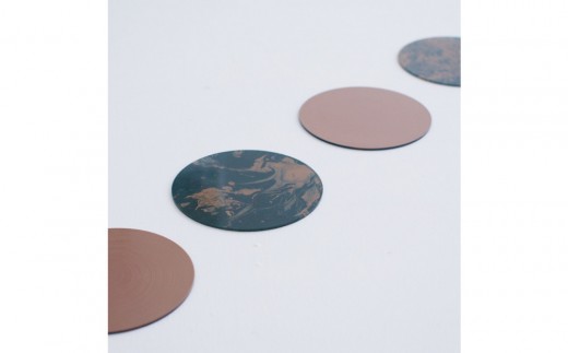 漆の墨流しで一点ずつ模様付けをした漆とアクリルでできたコースターです。