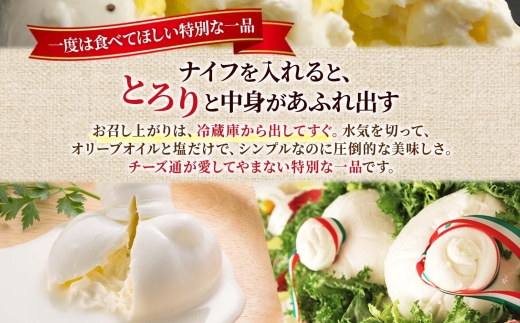 モッツァレッラの生地でフレッシュクリームとストラッチャテッラ(モッツァレッラの繊維)を包み込んだ、南イタリア伝統のフレッシュチーズです。