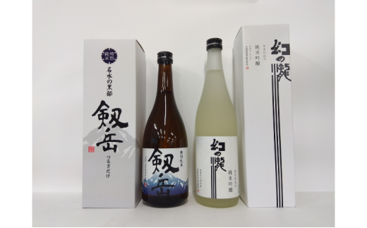 酒蔵の敷地内に名水百選に選ばれた湧水の井戸を持ち、富山県唯一の女性杜氏が仕込み、しっかりとした酸味の後に広がる米の旨みが特徴で、冷やして爽やかにお飲みいただける皇国晴酒造の「幻の瀧 純米大吟醸」と、銀盤酒造のすっきりと米の旨味が感じられる「銀盤 特別純米酒 剱岳」。