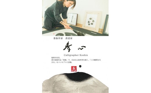福岡市在住の墨象作家・香心(こうしん)による、黒田官兵衛をテーマにした「静かなる強さの系譜」シリーズ第2作目。墨象作品《慈影(じえい)》の原画です。