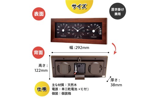 フォレ温・湿クロック TQ-4732 ダークブラウン 温湿度計 時計 感染症対策 健康管理 インテリア シンプル 天然木 木目調 置き掛け兼用 電池式 [AJ136]