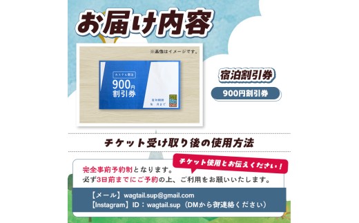 wagテイル 宿泊割引券(900円分) チケット 宿泊券 ゲストハウス ホステル ホテル 自然 アクティビティ 体験 SUP リバートレッキング ペット 愛犬 愛猫 動物 【wagテイル】akn101-01