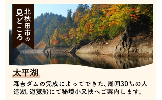 その他、世界一の綴子大太鼓や世界遺産に登録された伊勢堂岱遺跡、田舎スイーツ「北あきたバター餅」などがあり、文化・食・自然など、様々な楽しみ方ができるまちです。