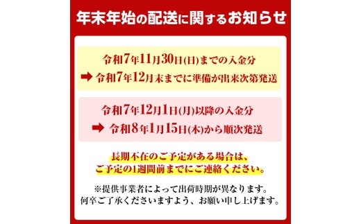 ご入金確認から2ヶ月までに順次発送 (長期不在のご予定がある場合は、ご寄附後1週間以内にご連絡ください) ※配送日の指定は承っておりません。長期不在等により返礼品をお受取りできなかった場合、再発送はいたしかねます。 ※年末年始、繁忙期は通常期よりお時間をいただく場合がございます |
