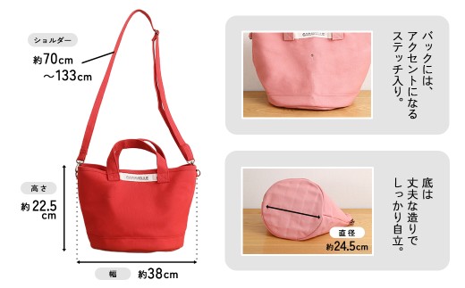 - 【CARAVELLE】サポーターズバッグ(col.レッド)バケツタイプのバッグ+取り外しショルダー 幅約38cm 高さ約22.5cm 直径約24.5cm ショルダー約70cm~133cm かばん 下呂市 ハンドメイド 8号帆布