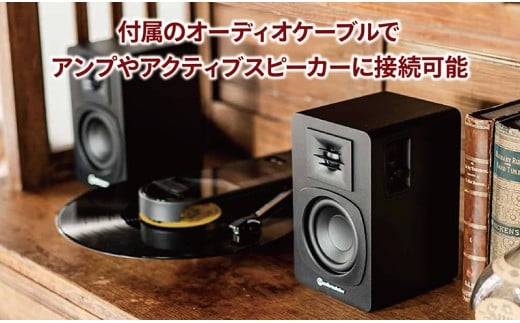 *本製品からは直接音は出ません。別途ワイヤレス(Bluetooth)アクティブスピーカーやヘッドホン、またはRCA端子のあるステレオシステムが必要です。