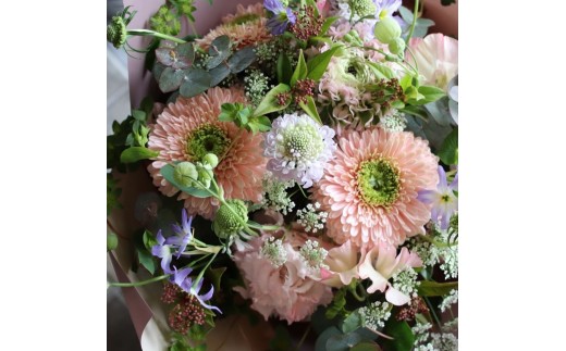 【ふるさと納税】【3ヶ月定期便】オリジナルフラワーアレンジブーケミディサイズ(Mサイズ) 季節のお花(生花)おまかせ fuku farming flowers
