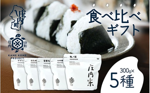 - 山形庄内かめこめプロジェクト 庄内米食べ比べギフト 300g×5種 亀ノ尾 つや姫 はえぬき 雪若丸 ササニシキ 令和7年産 2025年産 ブランド米 コシヒカリの原点、亀の尾発祥の地 庄内