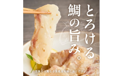 牛深の海で育った真鯛を水揚げ即日スライスし、ごまだれに漬け急速凍結。