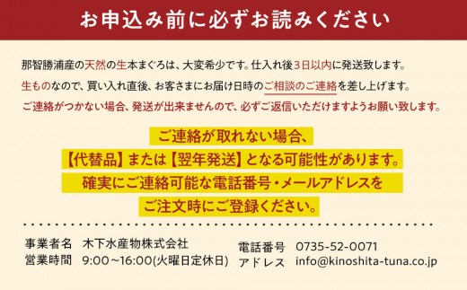 那智勝浦産の天然の生本まぐろは、大変希少です。仕入れ後3日以内に発送致します。