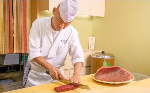 四ツ谷「後楽寿司 やす秀」の店主・綿貫安秀氏が、和歌山県・那智勝浦の名産品「生まぐろ」を使った
