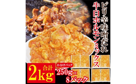 - 牛白ホルモンミックス ピリ辛味噌だれ 2kg(250g×8パック) 冷凍 小分け ホルモン 味噌 たれ 味付 焼肉 焼き肉 肉 牛 牛肉 おかず おつまみ 【そうざい男しゃく】【ho1599】