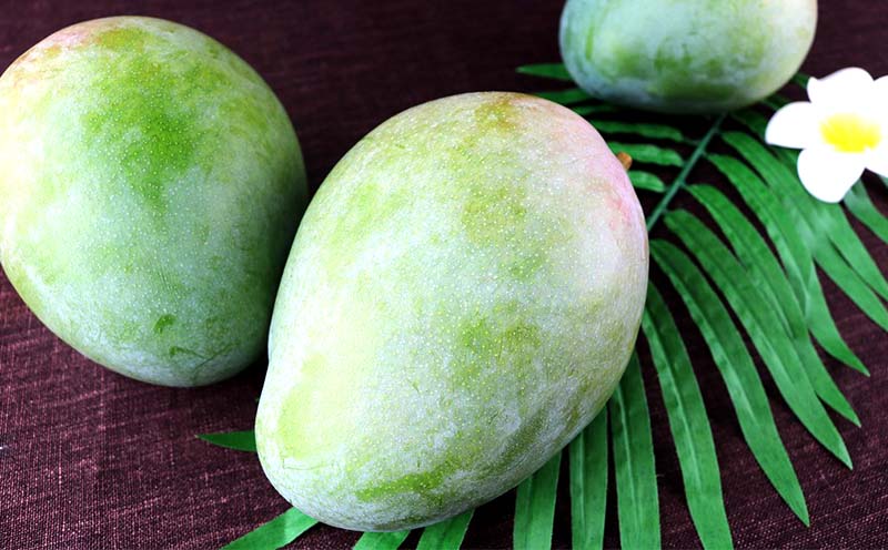 キーツマンゴーは、完熟しても皮は緑色のままですが、果肉はオレンジ色。深みのある、甘味たっぷりのマンゴーに成長します。食べ応え十分のキーツマンゴーをどうぞ。