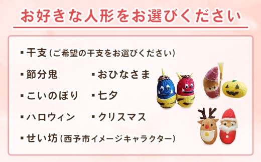 - <まゆ人形 1種(節分鬼/ハロウィン/クリスマス/干支/おひなさま/こいのぼり/七夕/せい坊)> 国産 まゆ人形 繭人形 西予産 贈り物 プレゼント 人形 飾り物 伝統工芸 愛媛県西予市蚕糸業振興協議会 西予市【常温】『1か月以内に順次出荷予定』