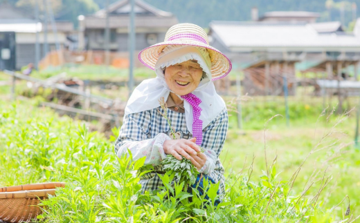 春、摘んできた柔らかなよもぎを昔ながらの知恵で囲炉裏の灰を使ってアクをとっております。