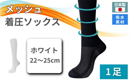 - メッシュ着圧ソックス ホワイト 1足/ 夏用着圧 冷感着圧 足底・足の甲 レディース 蒸れない靴下 吸水 メッシュ生地 白 22-25cm【nkmd004-2】