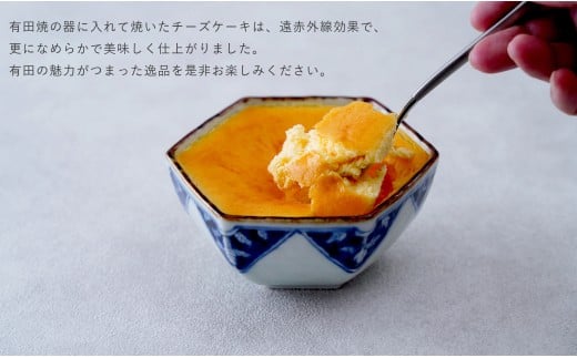 有田焼の器に入れて焼くため有田焼の遠赤外線効果で、更になめらかで美味しく仕上がりました。