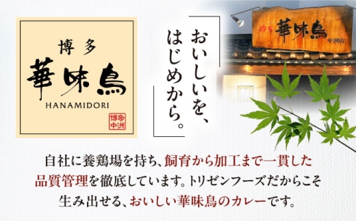 九州産銘柄鶏「華味鳥」を使用し、「水たき料亭 博多華味鳥」の料理長が監修したチキンカレー10食入りです。