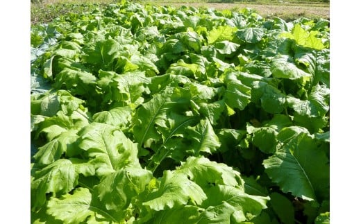 この様な気候風土の関係上、野沢菜栽培の適温に合わせて産地を変えて、安全、安心を考え契約栽培により減農薬にて栽培しています。