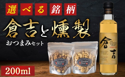 - 【選べる銘柄】マツイピュアモルトウイスキー倉吉/松井ミズナラカスク/松井ピーテッド/松井サクラカスク/鳥取バーボンバレル/ 山陰ブレンデッドウイスキー/山陰バーボンバレル 200mlと燻製おつまみセット ウイスキー おつまみ セット 燻製 ナッツ お酒 酒 アルコール 鳥取県 倉吉市