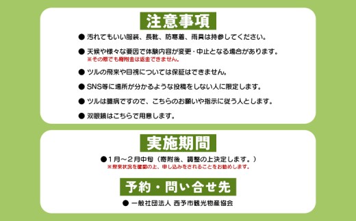 <ツルのねぐら・採食場観察ツアー(ねぐら立ち見学無し)> つる ツル 鶴 鳥 野鳥 貴重 体験 観察 ツアー ねぐら ネグラ ねぐら立ち ナベヅル 鍋鶴 マナヅル 真鶴 真名鶴 野鳥観察 採食場 西予市観光物産協会 愛媛県 西予市