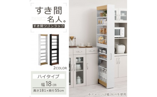 - 【完成品でお届け】すき間ワゴンラック ハイタイプ〔幅18cm・ツートンタイプ〕(ウォールナット×ブラック)隙間収納 キッチン キャスター付き キッチンワゴン スリム 収納 すき間収納 ランドリー ラック KKANRA945194-0-BK