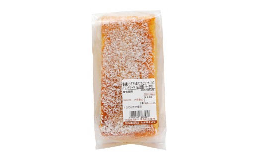 パッションフルーツピューレとラム酒をあわせたシロップを上に塗り、有機ココナッツを振りかけています。