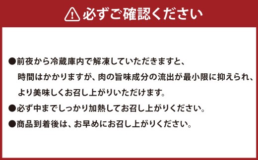 ・前夜から冷蔵庫内で解凍していただきますと、時間はかかりますが、肉の旨味成分の流出が最小限に抑えられ、より美味しくお召し上がりいただけます。