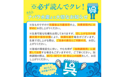 ・生食可能な牡蠣を出荷しておりますが、召し上がる方の健康状態や保存状態により、体調を崩す場合がございます。