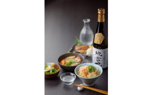 炭火焼・山塞料理地雷也の名物・キンキの炭火焼きの塩と香ばしさに合わせて醸したオリジナルの日本酒、純米大吟醸「地雷也」。