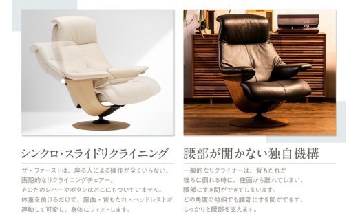 ザ・ファーストは、カリモクの最先端エルゴノミクス(※人間工学)から生まれた、全く新しいリクライニングチェアー。
