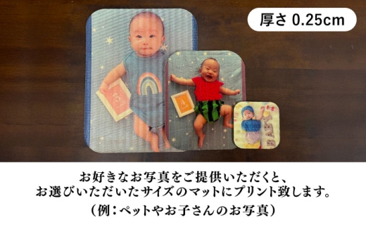 愛知県愛西市の畳メーカー「有限会社なかしま」から届いた、オリジナルプリントのミニ畳マットです。
