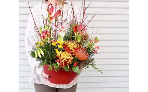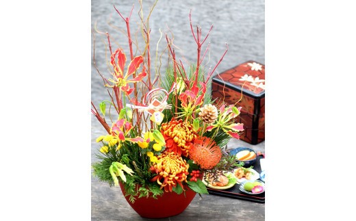 - <先行予約>新春 お正月 フラワーアレンジメント(紅彩)