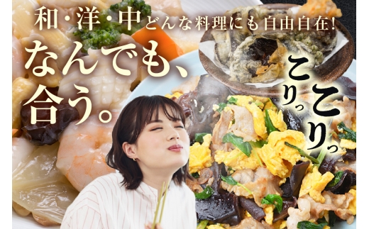 “コリコリ”の食感で、他食材とも調和し和・洋・中のどんな料理にもご利用いただけます。