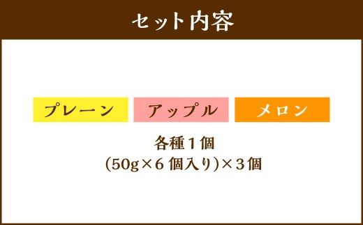 ムースを流して全体にカステラのクラムをまぶして仕上たメロンの3種セットです。