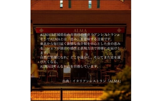 本返礼品は、「女川ふるさと便」として、イタリアンレストラン ALMA(東京都渋谷区) にてご利用いただけるお食事券 です。