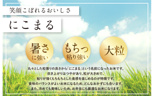 にこまる。おいしくて笑顔がこぼれる品種・粒張りの良さ(まるまる)を表し名付けられました。