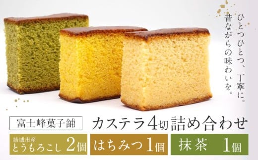 カステラ 詰め合わせ 4切 富士峰菓子舗《30日以内に出荷予定(土日祝除く)》茨城県 結城市 お菓子 スイーツ 和菓子 とうもろこし はちみつ 抹茶
