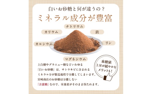 宮崎製糖のお砂糖はすべて精製していない体にいいお砂糖です。自然由来の甘さ、コク、香りを楽しんで頂ければと思います。