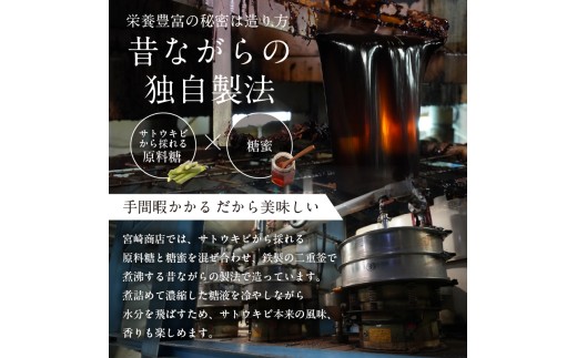 サトウキビから取れる原料糖と糖蜜を掛け合わせ、鉄製二重釜で煮沸、乾燥させる昔ながらの製法で造っている赤糖になります。
