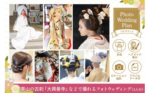フォトウエディングプラン ソロチケット【前撮り 和装 大興善寺 アルバムデータ 白無垢 アンティーク色打掛 引振袖 ヘアメイク 洋髪 日本髪 ロケーション撮影 四季折々 高級感 フォトアルバム 撮影データ 100枚以上 季節に応じた提案 特別な瞬間 思い出作り】K102002